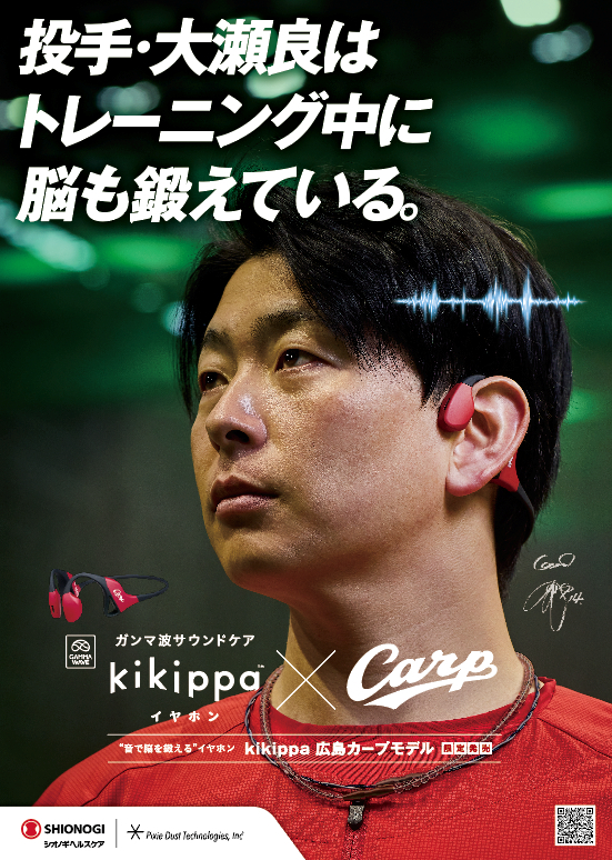 “ガンマ波サウンド”で脳を鍛える「kikippaイヤホン」が広島東洋カープとコラボ。大瀬良選手がイメージキャラクターに