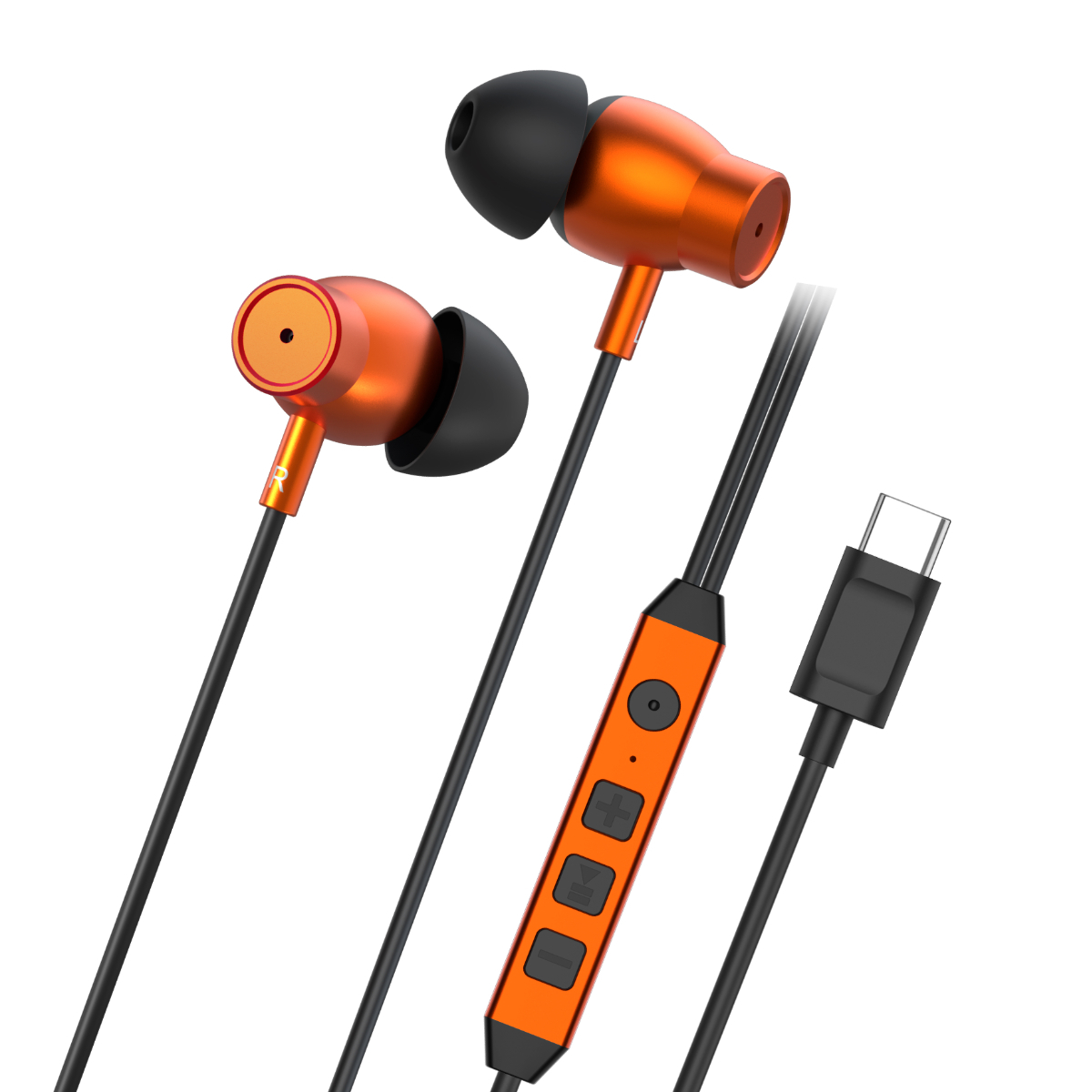 アクティブノイズキャンセリング(ANC)と外音取込機能を備えたUSB Type-C端子接続の有線イヤホン。