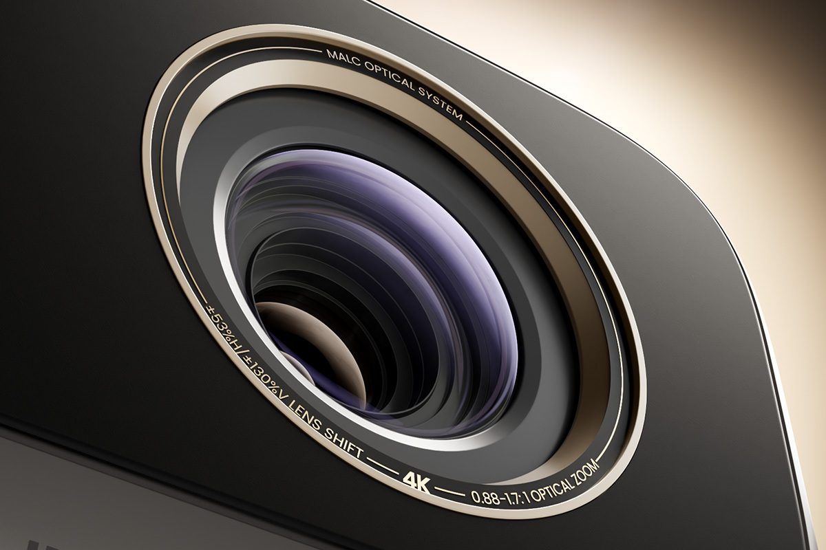 加えて、14+1+1層で構成された自社設計の光学レンズを搭載。最大99%の光透過率を誇る高精度レンズ群が、映像の明るさ/コントラスト/色の深みに寄与するだけでなく、歪みや色収差を抑制。画面の中央から隅までシャープでクリアな描写を実現するとしている。