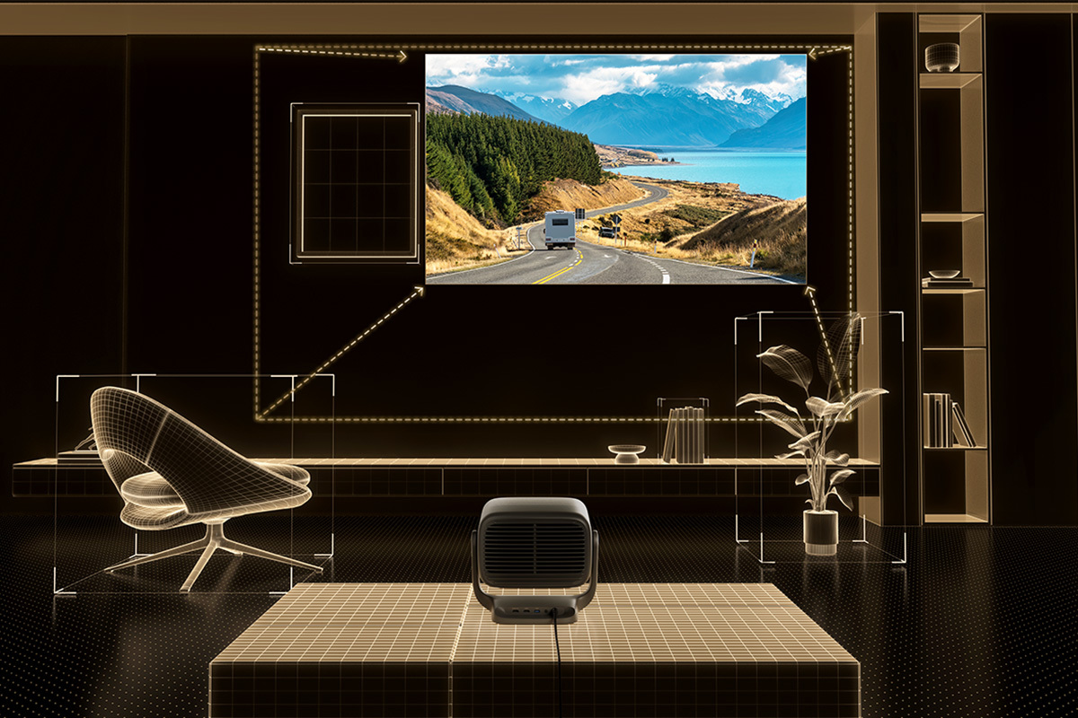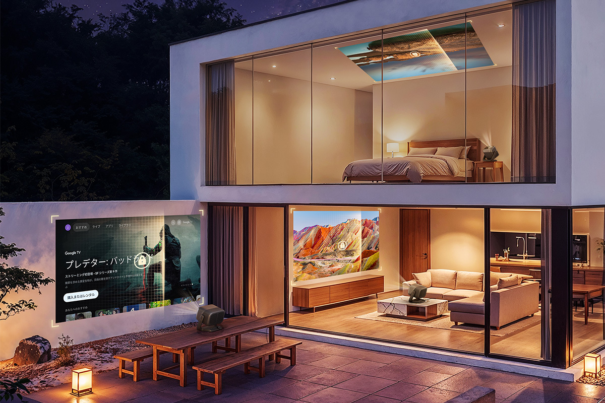設置面では、水平±53%/垂直±130%のレンズシフト機能のほか、AIによる自動認識/調整機能を装備。AI空間認識によって、設置環境を分析、あわせて投写位置/障害物回避/フォーカス調整/台形補正などの自動調整を行う。プロジェクターを置くだけで、画質の損失を抑制しながら最適な大画面環境を構築できるという。