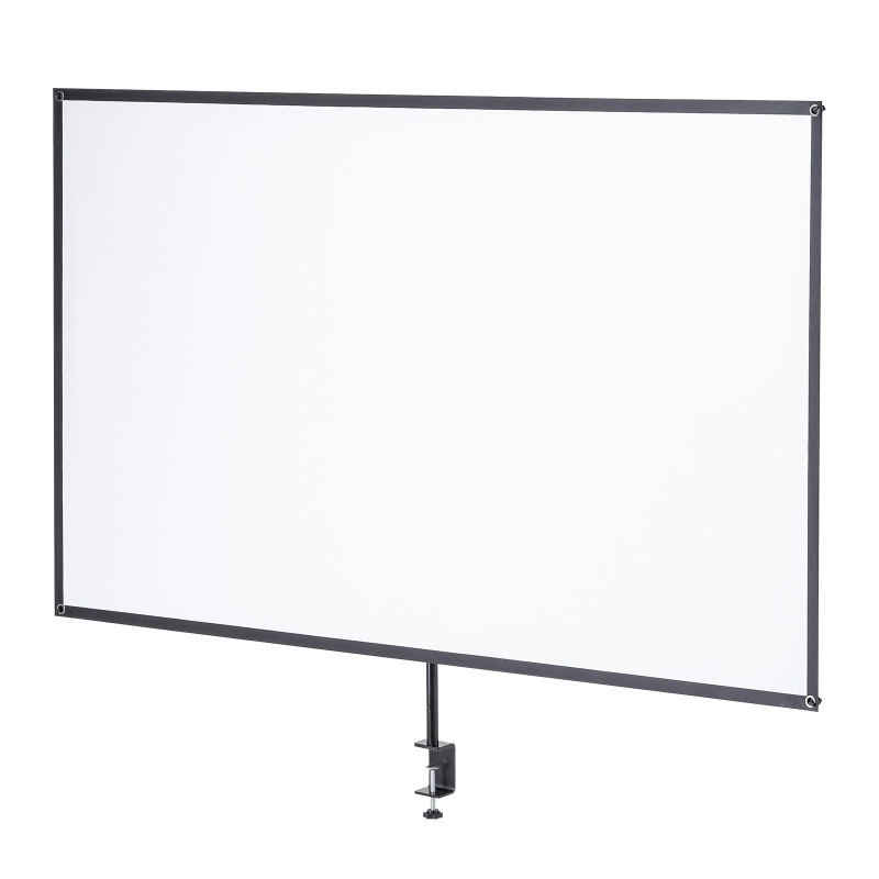 PRS-C80HDは、 厚さ8 - 76mmのデスクやテーブルにクランプで固定できるプロジェクタースクリーン。スタンド不要で限られたスペースにもすっきり設置できるとのこと。