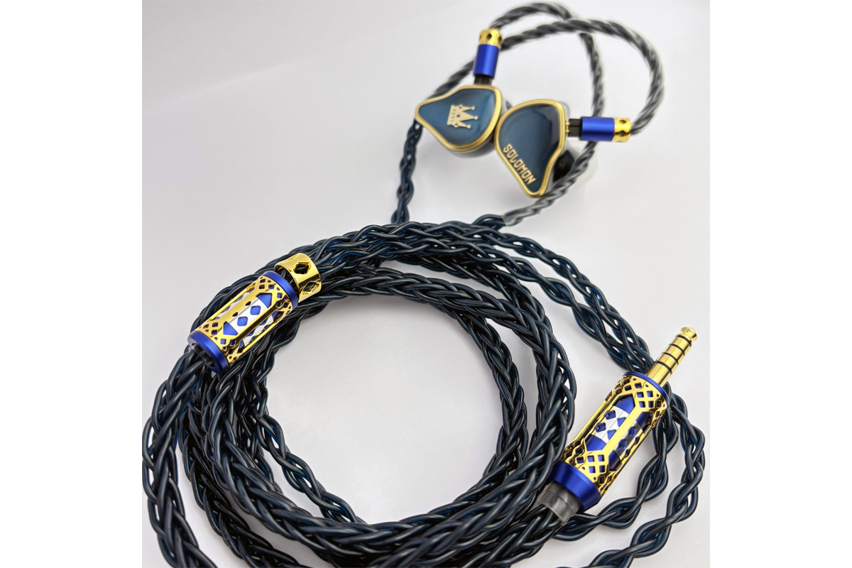 0.78mm 2pinコネクターによるケーブル着脱に対応。古河電工の単結晶導体を採用した4芯構造の4.4mmバランスケーブルに加え、「Temple of Gold」と名付けられたハイグレードな8芯構造の4.4mmバランスケーブルも付属する。