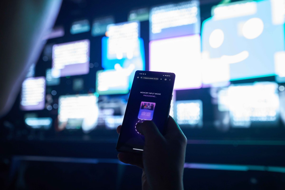 プログラムが開始する前のテストとして、来場者のスマートフォンが正常に反応するかをチェックしていたが、全員のスマートフォンを一斉に鳴らすのではなく、順番に鳴っていくのだが、来場者ひとりひとりのスマートフォンが鳴るため、個別に認識されている感覚になる。