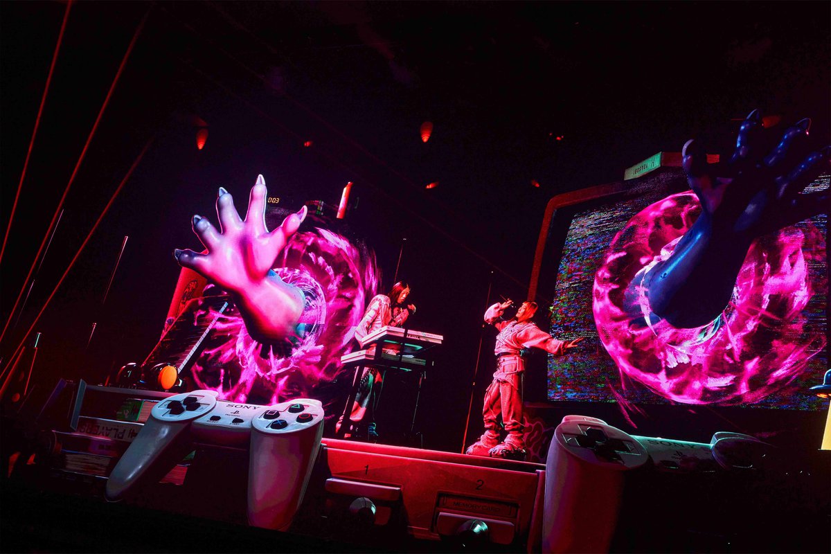 YOASOBIのふたりが歌っているシーンでは、メンバーのモーションキャプチャも行っていることから、とてもリアリティが高く、動きが滑らかなのはもちろん、立体的でLEDディスプレイの前にふたりが立って演奏しているように見えるほど。作品世界から、ライブに移動したような感覚だ。また、照明も印象的で、作品やYOASOBIの演奏に合わせて、アグレッシブに動く照明は、非現実感が飛躍的に増す効果がある。