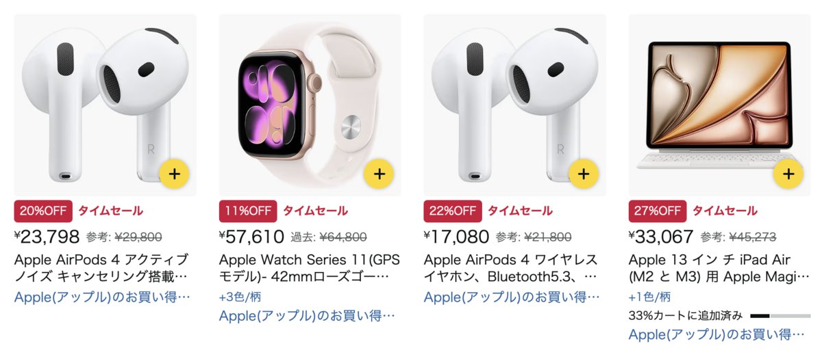 Amazonタイムセールにて、「AirPods 4」や「Apple Watch」などのアップル製品がお買い得価格で登場している。Amazonでは大型セールを除いて、あまり値引き出品されることのないメーカーなので、ぜひお見逃しなく。