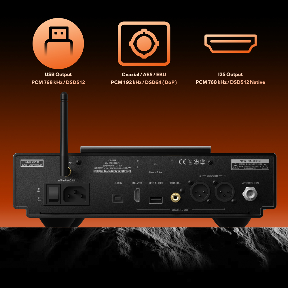 同製品は、専用アップサンプリングチップセット「CT7302C」を搭載するデジタルトランスポート。さまざまなデジタルソースをPCMまたはDSD信号として最適化し、DACとの伝送をより理想的に行えるという「All to DSD・All toPCM機能」を搭載している。