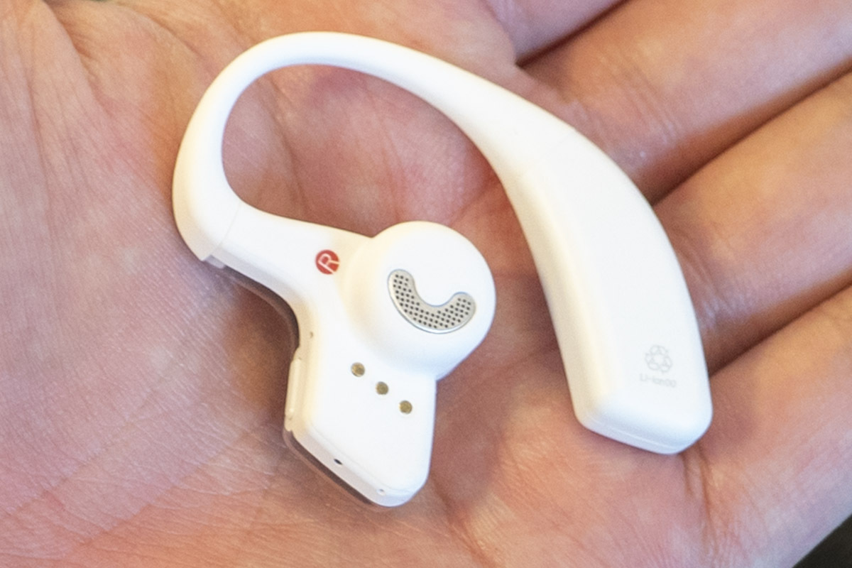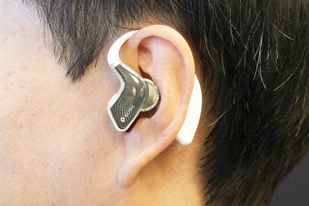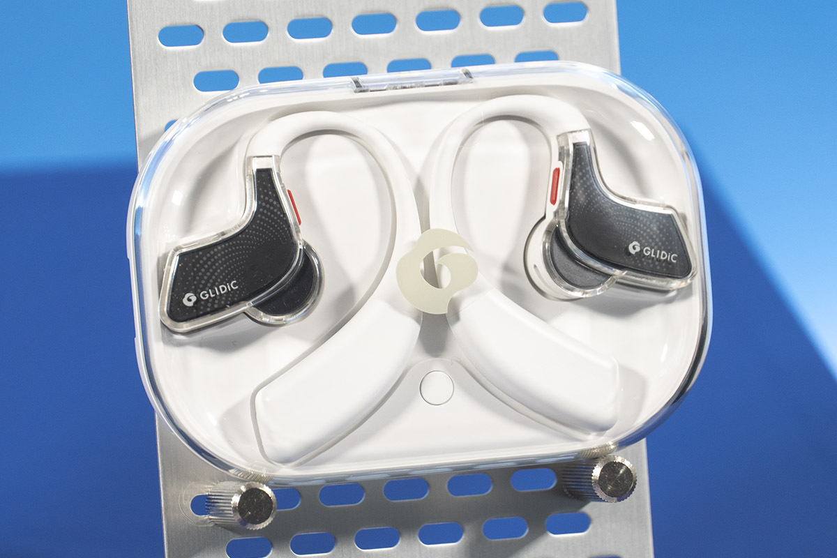 またイヤホンとしての性能も追求しているとのことで、GLIDiCブランドで培ったオーディオ技術を投入。ドライバーユニットにはDLC振動板を採用した12mm径ダイナミックドライバーを搭載。アプリからはイコライザー機能も利用できる。録音マイクは通話ノイズリダクションにも寄与するほか、耳掛け部分は長時間の装着でも疲れにくい形状を目指して設計されている。