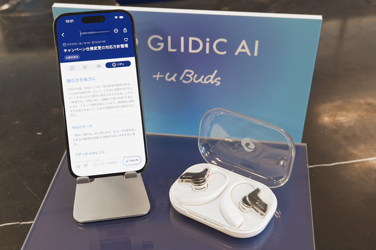 SB C&Sはコンシューマー向けAIプロダクトブランドとして新たにGLIDiC AIを設立。ブランド第1弾の製品としてAIを搭載した完全ワイヤレスイヤホン「GLIDiC AI +uBuds」を開発した。