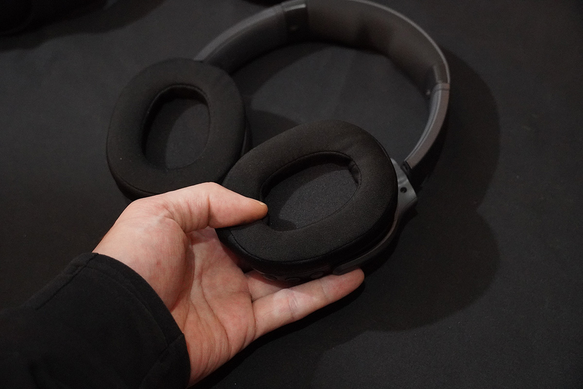 イヤーパッドには通気性に優れたファブリック素材を採用。ヘッドバンド部も汚れがつきにくく拭き取りやすいPU素材で、トレーニングで着用した後でも手入れが簡単に行えるという。