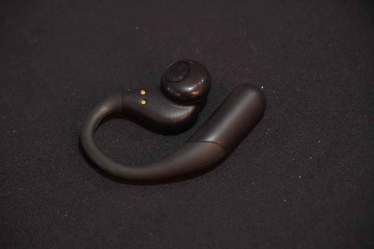 耳を塞がないオープンイヤー型デザインにより、周囲の音を聞きながら音楽を楽しめ、日常からワークアウトまで幅広く対応。本体はハンガー型の耳かけ構造を採用し、楕円形のフォルムで耳に安定してフィットする。