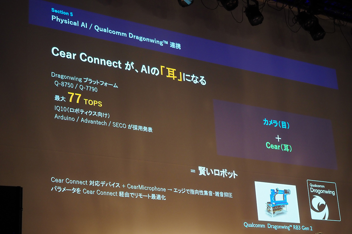 「今回のイベントで示されるQualcomm『Dragonwving』を軸としたEdge AI音響や、Bluetoothを活用した空間向けソリューションは、日本の産業構造や社会インフラと高い親和性を持つ取り組みだと私どもは考えております」とコメント。シーイヤーとのパートナーシップを好意的に捉えている旨を説明した。