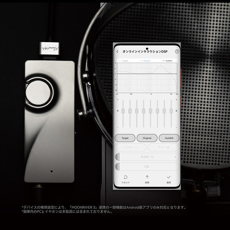 DSPの切り替えが可能な物理スイッチを本体側面に配置。第2世代DSPの機能によって、他のユーザーから共有された最適な設定を本体に直接保存して楽しむことができる。そのほか、Android端末以外でも緻密なチューニングが行える、WEBプラットフォームも公開している。