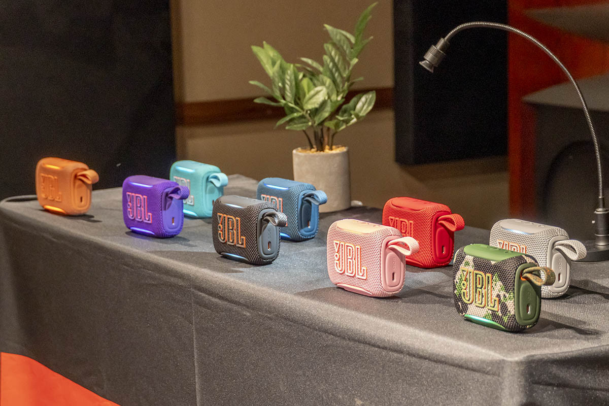 ハーマンインターナショナルは、4月9日(木)にメディア向けのJBL新製品体験会を実施。新しいポータブルBluetoothスピーカー「JBL GO 5」や、“革新的”とアピールする小型マイクシステム「EasySing Mic Mini」を先行披露した。