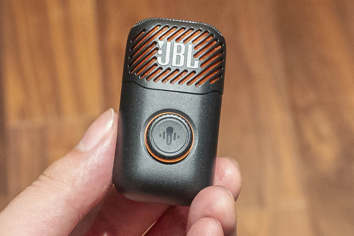 体験会にてJBL GO 5とともに参考出展されたのが、小型マイクシステム「EasySing Mic Mini」。マイク本体とUSBドングル型レシーバーからなる製品で、対応するJBLスピーカーにレシーバーを接続することで、マイクの音声をスピーカーから再生しPAのように使うことができる。