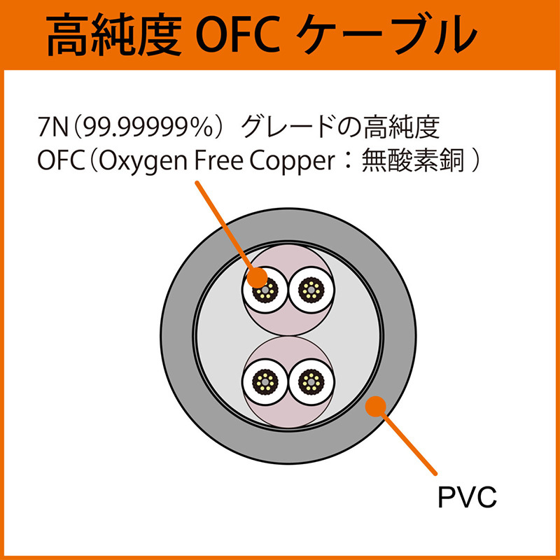 付属ケーブルには、7Nグレードの高純度OFCケーブルを用いた独自のアンバランス2極3.5mmYケーブルを用意した。ヘッドホンとの接続端子は3.5mm 2極ミニプラグ×2、再生機器側には6.3mm標準プラグを装備。長さは2mとなる。