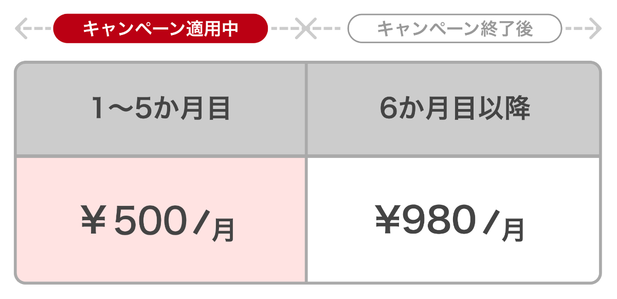 通常月額980円がワンコインに