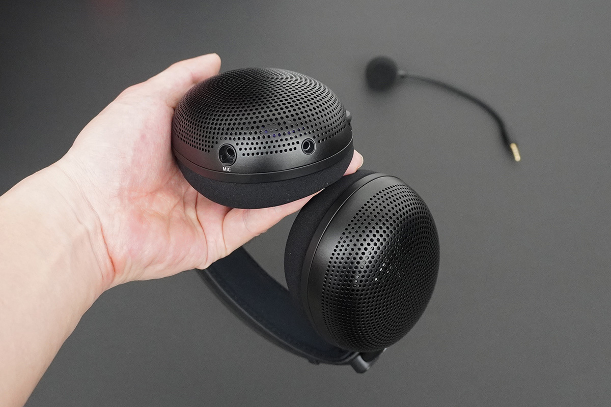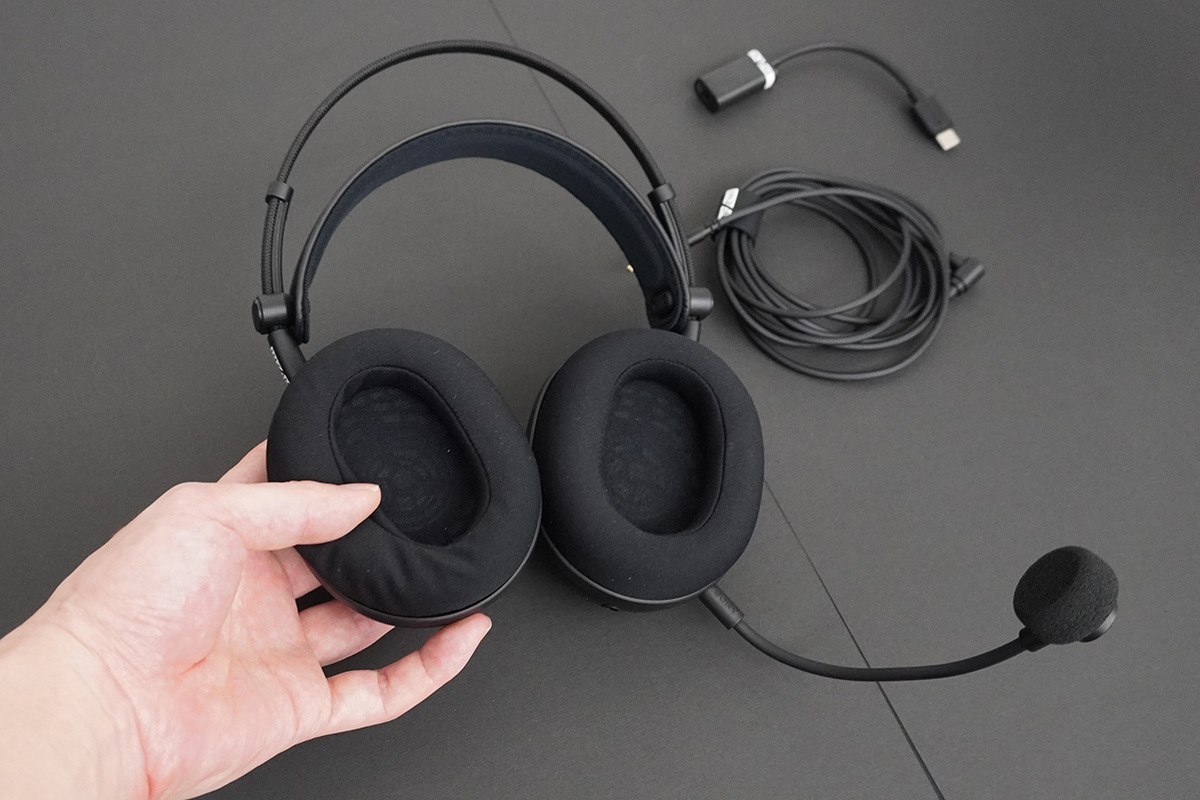 マイクには単一指向性の高品質なブームマイクを装備しており、使用しない時は本体から取り外しが可能。背面開放型の恩恵として、サイドトーンに頼らずプレイ中でも遅延なく自身の声を把握できるという。
