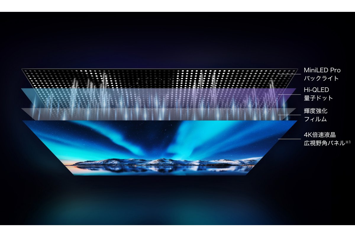 バックライトを前モデルの「Mini LED」から、上位機種で採用されていた「Mini LED Pro」へとブラッシュアップされていることがトピック。高輝度、高コントラストを実現しており、従来モデルと比較して最大輝度が33%向上している。