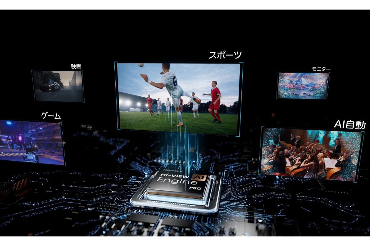 映像エンジンには、TVS REGZAと共同開発したAIエンジン「HI-VIEW AIエンジンPRO」が投入されている。「AIピクチャー」「AIシナリオ」「AIサウンド」「AIエネルギー」といったAI機能を活用することができるのが特徴だ。