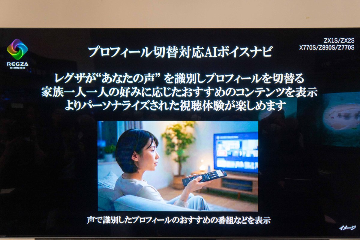 さらに「プロフィール切替対応AIボイスナビ」も投入。レグザがユーザーの声を識別して、プロフィールを切り替えられるようになった。よりユーザー毎にパーソナライズされた視聴体験を楽しめるという。また、「ざんまいスマートアクセス」「ゲーミング2画面」「シーンリスト」といった、スマート機能も備える。