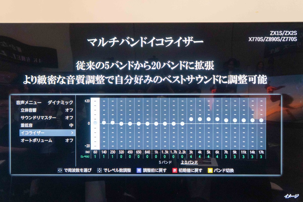 「マルチバンドイコライザー」機能を新搭載。従来までは5バンドに、新たに20バンドの調整機能が加わった。60/140/230/320/450/650/1k/1.3k/1.7k/2.2/3k/4k/5k/6k/7k/9k/11k/14k/17kのバンドを備えており、緻密な音質調整に応えてくれる仕様に大幅進化した。