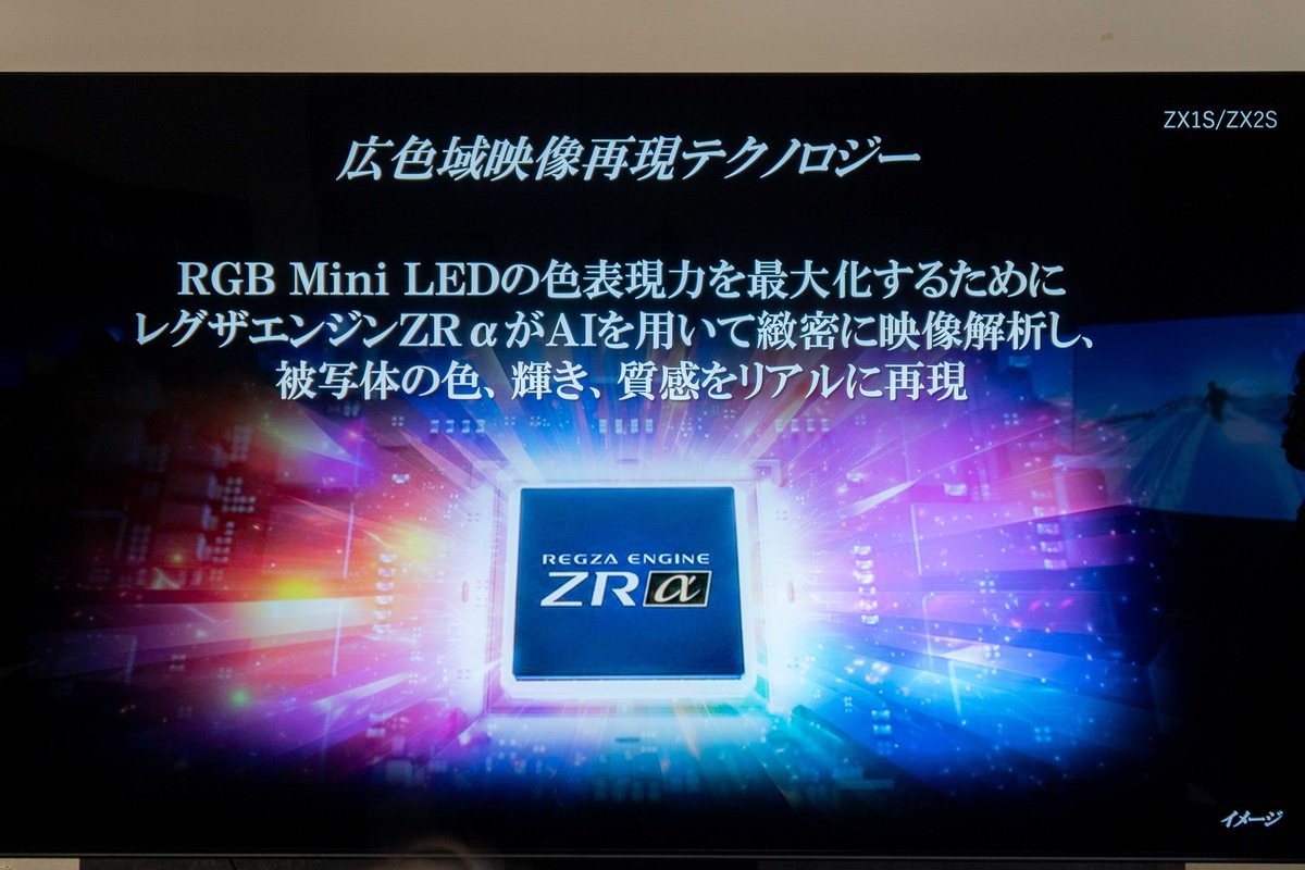 RGB Mini LEDバックライトになることで、従来の単色バックライトよりも、非常に緻密なバックライトコントロール技術が求められる。それを叶えてくれるのが、AIを用いて映像分析し、被写体の色、輝き、質感までリアリティ高く描くための高画質処理を可能にする「レグザエンジンZRα」(2026年度版)だ。