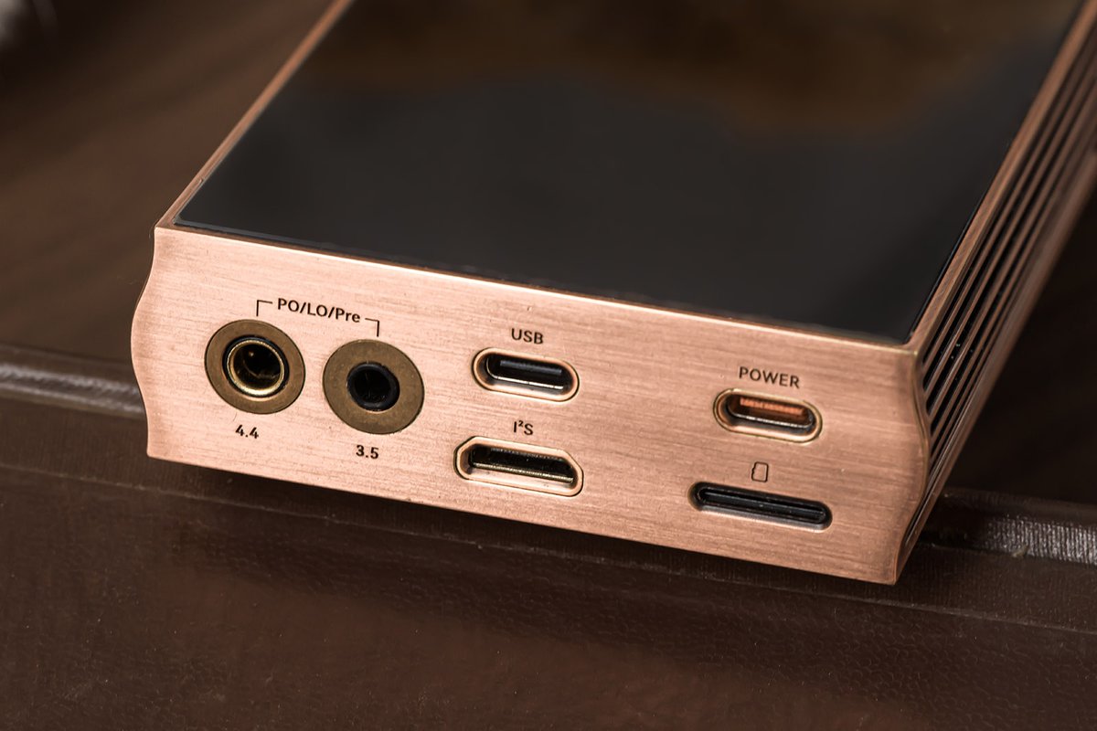 ヘッドホン端子は4.4mmバランス/3.5mmシングルエンドを1系統ずつ搭載。最大出力は4.4mmで1,300mW(32Ω、Turboモード)、3.5mmで600mW(32Ω、Turboモード)となる。