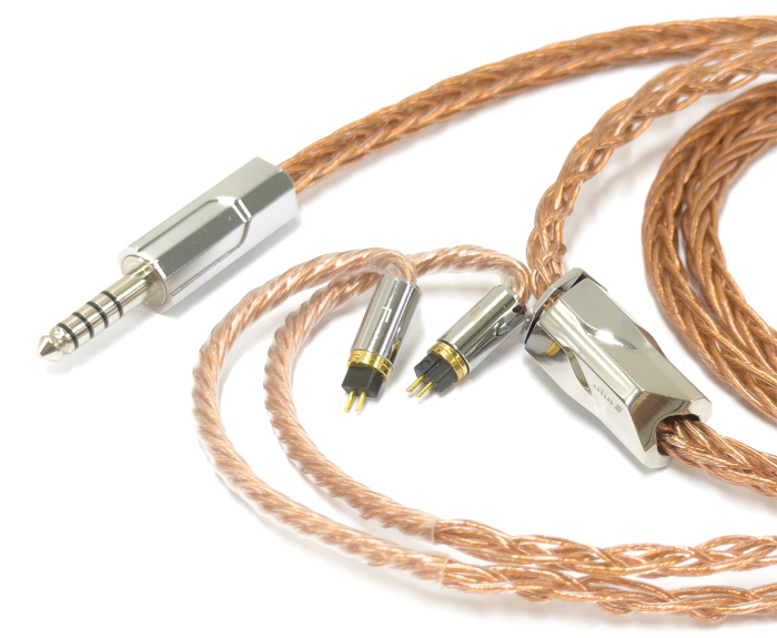 プラグはロジウムメッキ4.4mm 5極バランス端子を搭載。信号伝送時のロスを抑え、耐摩耗性にも配慮した。分岐部のパーツには鏡面仕上げや「アイスクリスタル・チタン」を取り入れ、結晶のような質感と金属の光沢を調和。機能性とデザイン性の両立を図った。ケーブル長は約1.2mm。保証期間は1年。