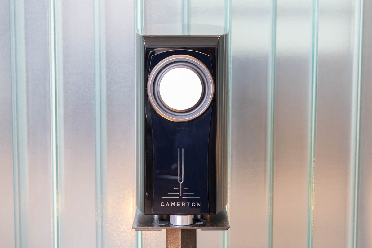 飯田ピアノは、ArcTech BerlinやKuraDaなどのハイエンド・ヘッドホン/イヤホンなどが体験できるブースを設ける一方、別室にてCAMERTONのスピーカー「Binom-1」を国内初披露。TADのプリメインアンプと組み合わせた再生システムで来場者を迎えた。