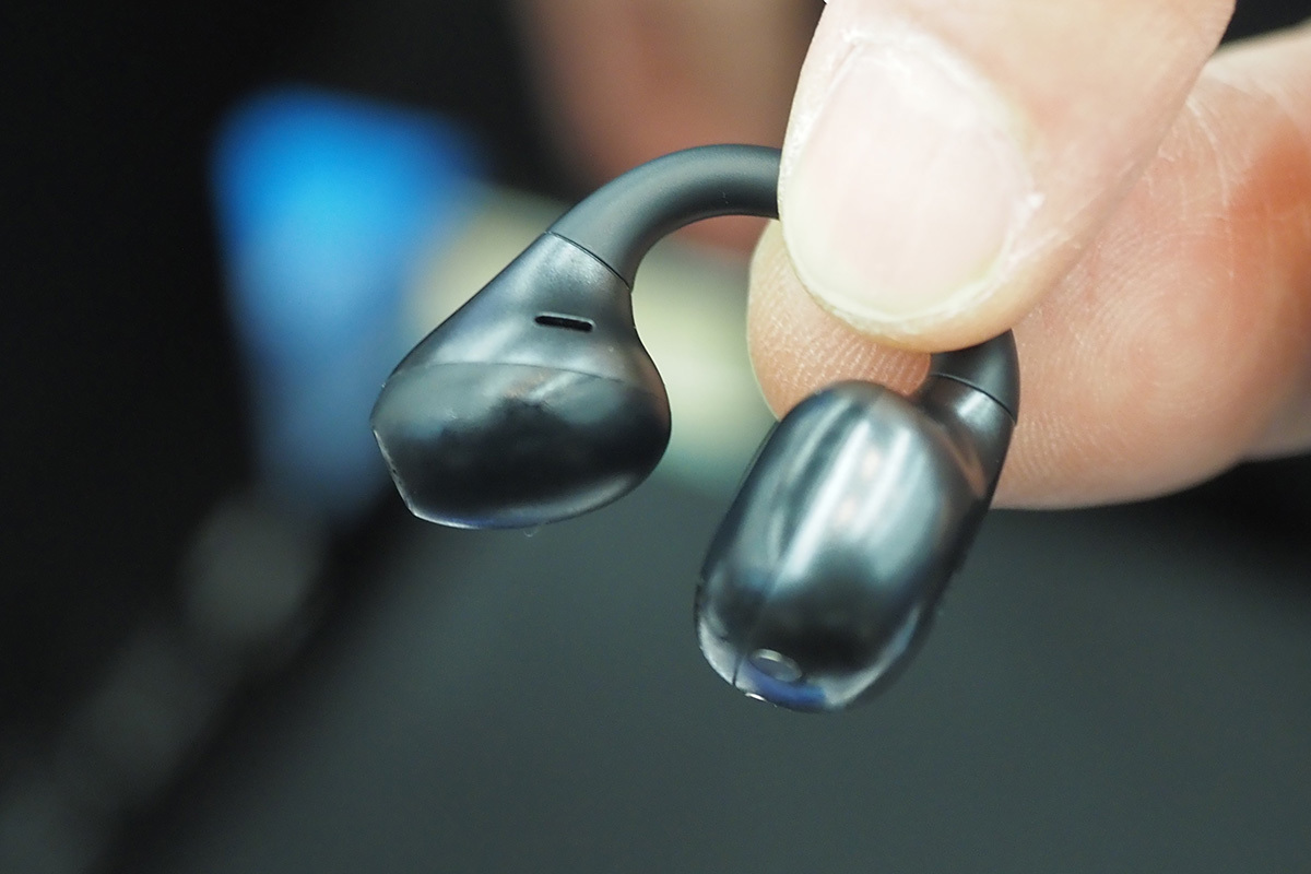 「comfo bass」ではイヤーカフ型のスピーカー部分が耳の奥まで入る設計を行い、外音が聴こえる “ながら聴き” の軽い装着感と、低音成分もしっかりと感じられる音楽再生を両立するという。既存のイヤーカフ型モデル「LolliClip」と比べても軽量で、長時間の使用にも適した設計となっている。