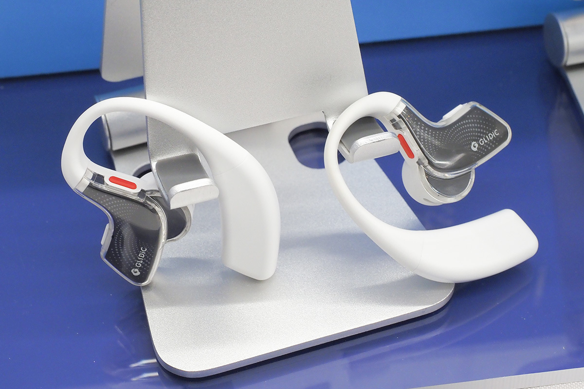 Makuakeブースでは、SB C&Sが取り扱うGLIDiC AIの完全ワイヤレスイヤホン「GLIDiC AI +uBuds」や、シリウスのウェアラブルスピーカー「SWIRE AURBIS(スワイヤー・オルビス)」などがデモンストレーションを行っていた。