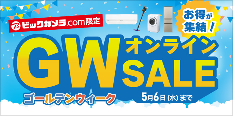 ビックカメラは、同社直販サイト「ビックカメラ・ドットコム」において、限定セール「GW オンライン SALE」を開催している。期間は5月6日23時59分まで。