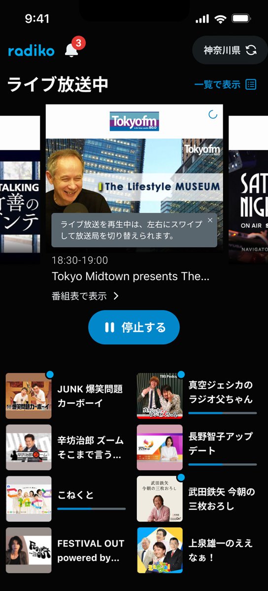表示される番組は利用傾向に応じて更新されるため、ユーザーの聴取スタイルの変化にも柔軟に対応可能としている。