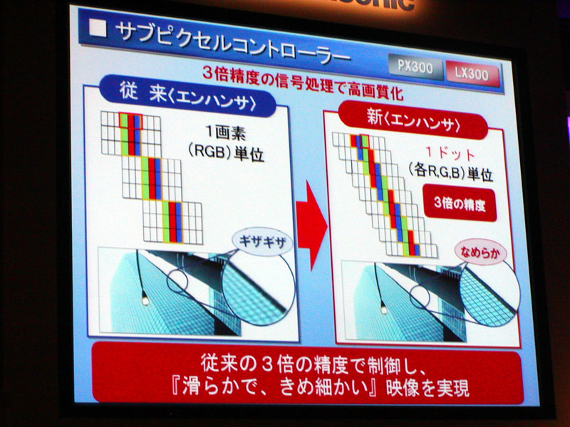 HOME > ニュース > AV&ホームシアターニュース [松下新VIERA] 36億2000万色を実現した新「PEAKS」テクノロジー 2004年05月10日 前の写真へ 次の写真へ サブピクセルコントローラー 前の写真へ 次の写真へ この写真の記事へ 関連リンク Phile-webニュ-ス[松下、新「VIERA」プラズマ・液晶テレビ13モデルを一挙発表]