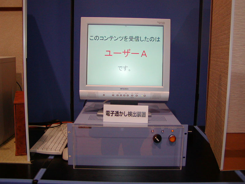 HOME > ニュース > AV&ホームシアターニュース NHK技研公開(2) 「サーバー型放送」がテレビライフを変える 2004年05月27日 前の写真へ コンテンツに「電子透かし」を埋め込むことにより、コンテンツ利用者を特定できる 前の写真へ この写真の記事へ 関連リンク NHK技研公開2004