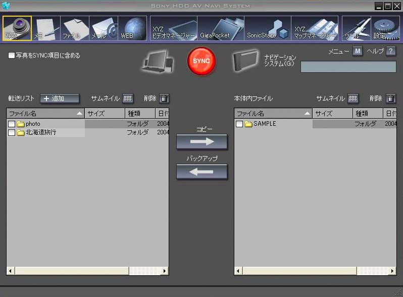 HOME > ニュース > AV&ホームシアターニュース <本日発売>会田肇のソニーHDD AVナビシステム「XYZ(ジィーゼット)」体験レポート〜Part.2〜 2004年06月10日 前の写真へ 次の写真へ 専用ソフト「XYZデスクトップ」で地図コンテンツや映像・音楽ファイルをPCとつないで一括管理できる 前の写真へ 次の写真へ この写真の記事へ 関連リンク 前のレポ-トを読む ソニ-「XYZ(ジィ-ゼット)」 オフィシャルサイト 「製品デ-タベ-ス」で「XYZ(ジィ-ゼット)」シリ-ズを調べる