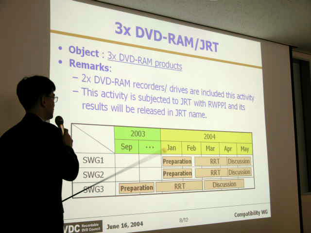 HOME > ニュース > AV&ホームシアターニュース 安心して楽しめるDVD製品を目指して〜RWPPIとRDVDCが共同互換性試験の結果を報告〜 2004年06月16日 前の写真へ 次の写真へ RDVDCのJRTにおける成果報告が行われた 前の写真へ 次の写真へ この写真の記事へ 関連リンク RWプロダクツ プロモ-ション イニシアティブ 記録型DVD会議