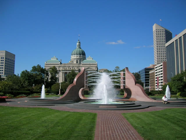 市の中心に建つインディアナ州会議事堂。熱気に溢れる会場とは裏腹に街全体は静かな雰囲気に包まれている