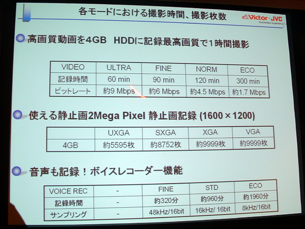 ビクター、1インチHDDにMPEG2記録するHDDカメラ“Everio”を発売