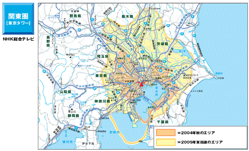 HOME > ニュース > AV&ホームシアターニュース 関東地区の地デジの出力が第2段階出力に移行 受信エリアが大幅に拡大 2004年09月16日 次の写真へ NHKデジタル総合テレビの受信エリア 次の写真へ この写真の記事へ 関連リンク 本件のニュ-スリリ-ス