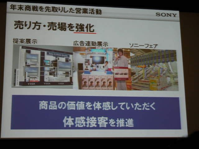 HOME > ニュース > AV&ホームシアターニュース ソニー年末新商品展示会を開催、年末“AVトータルシェア30%”を宣言 2004年09月16日 前の写真へ 次の写真へ 体感展示の売場ディスプレイを強化 前の写真へ 次の写真へ この写真の記事へ 関連リンク ソニ-マ-ケティング(株)