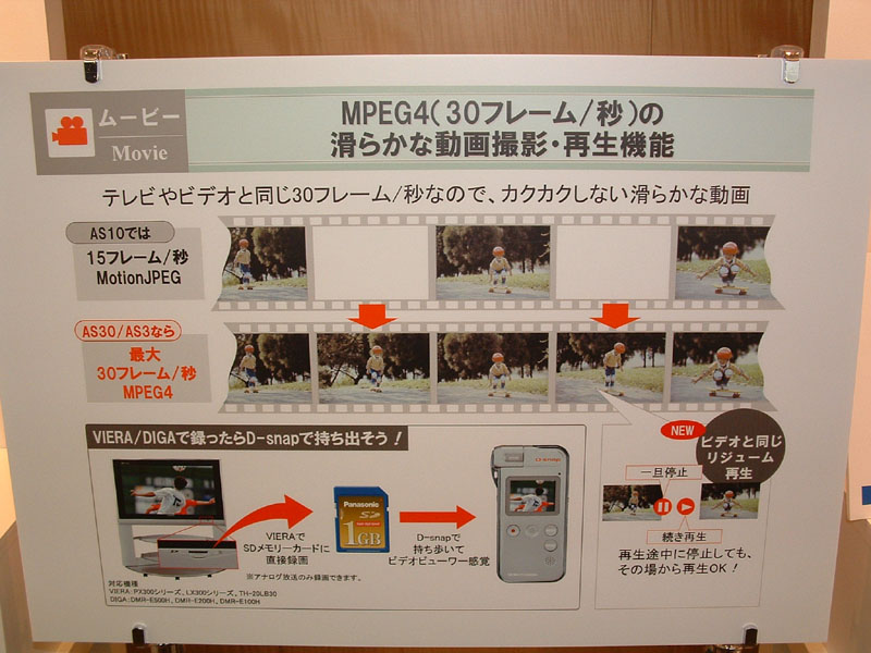 松下、320万画素CCD搭載、MPEG4 30フレーム記録が可能な新「D-snap」