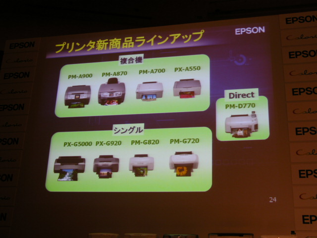 HOME > ニュース > AV&ホームシアターニュース エプソン、今秋冬の「カラリオ」新商品を一挙発表 2004年09月28日 前の写真へ 次の写真へ プリンタ商品の新製品ラインナップ 前の写真へ 次の写真へ この写真の記事へ 関連リンク エプソンのホ-ムペ-ジ