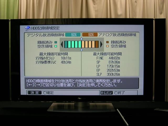 デジタル・アナログのHDD録画領域をあらかじめ指定できる