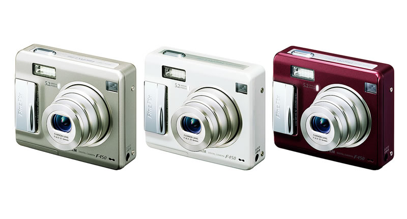 「FinePix F450」のカラーバリエーションモデル(右2台)