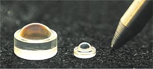 左:BD用「NA0.85単レンズ」 中央:「NA0.95単レンズ」 右:一般的なボールペン
