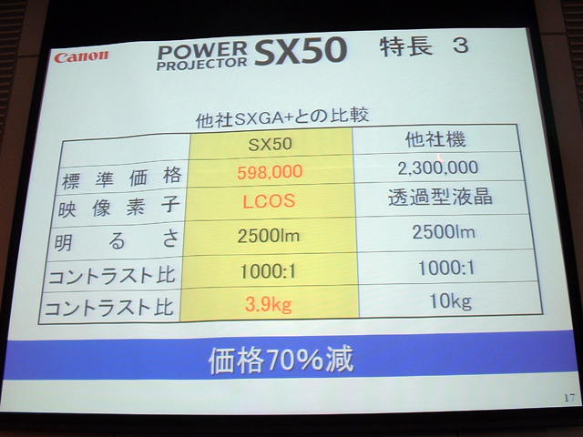 キヤノン、低価格を実現したSXGA+サイズのLCOS方式プロジェクターを発売