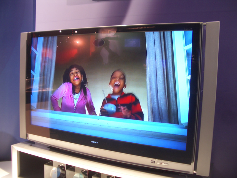 ソニーの70型SXRDリアプロジェクションテレビQUALIA006。フルHD解像度で鮮鋭な画像を見せる