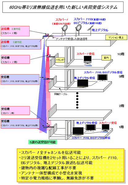 スカパー!とシャープ、ビル/マンション向けの無線共同受信システムを開発