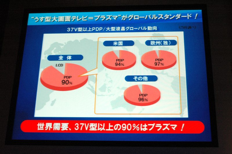 グローバルマーケットでは37V型以上の90%がプラズマテレビ